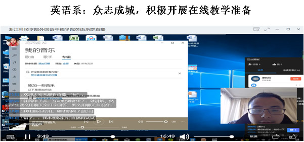 2020年初新冠肺炎的爆发冲散了年味,打乱了生活秩序,英语系的老师们虽然不能像医生一样冲在前线,但大家众志成城,积极响应“停课不停学”的号召,开学两周前就已积极准备在线教学方式,主要在以下两方面重点做了开学准备。一是课堂试播。大部分老师对微课录制或直播不熟悉,对众多直播工具也是知之甚少。为了真正当好“网红主播”,大家积极行动起来,认真对比QQ直播和钉钉直播的优劣,了解雨课堂、超星等平台,浏览各大慕课平台的外语资源,选择适合自己课程的网上教学方式。英语系原老师的爱人是医生,工作十分忙碌,女儿也不到一岁,他却勇挑重任,率先为英语系老师开启直播演示,耐心陪伴老师们进行网上授课实操。英语系众多教师也是直播间的活跃角色,轮流当“主播”和“学生”,尝试播放PPT、放映视频、连麦学生、群内讨论等功能,力求真正上课时胸有成竹,能呈现出自己最好的教学状态。正式开课前一周,英语系每位教师分工组织,对接任课班级,进行了线上直播测试。这次不仅教师复习了直播间的相关技巧,还让每位英语系同学亲自尝试了网上上课的滋味,同学们比较热情,对连麦功能也不陌生。直播后英语系教师在工作群内进行了热烈讨论,研究最便捷的点名方式、课堂互动模式、新式教学规范等。二是电子教材准备。英语系课程的教材并不统一,在教学院长的大力支持之下,不少出版社提供了一些课程的部分电子教材。有的老师未雨绸缪,积极加入盈科-浙江科技学院服务群、WE平台交流群,向相关出版社及全国同行征求教材电子稿,取得良好的效果,语法、泛读、英美文学等课程都获得了完整的电子教材。之后教师们主动联系学生,布置第一周的各科预习任务,为开学奠定了良好的秩序。