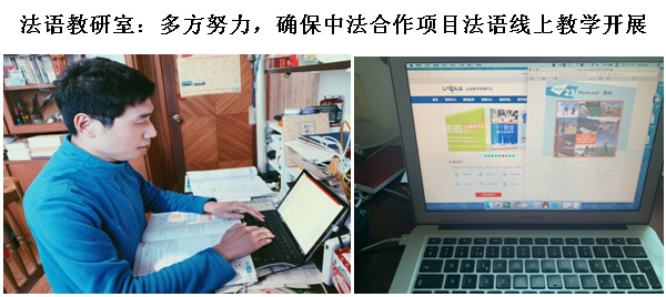 法语教研室承担着我校中法合作项目土木专业和大数据专业8个班的法语教学任务。新冠肺炎疫情爆发以来,根据学校防控工作的要求以及教务处和学院针对新学期的教学安排,法语教研室齐心协力确保中法合作项目法语线上教学的开展。通过对学生情况的摸排,教研室掌握了学生的线上学习条件,针对特殊情况向学生提供了力所能及的帮助。通过对线上教学的实战演练,教研室发现了线上教学可能存在的问题,针对不同的平台、不同的场景展开讨论、分享了经验。通过学院的协助,教研室与学生所用教材的出版社取得了联络,并争取到了专供我校师生在疫情期间使用的电子版教材。通过与外教不厌其烦的沟通,教研室竭力为学生提供良好的口语在线学习体验。