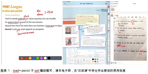 我个人使用的平板电脑是ipad air 3,支持手写笔Appel pencil的配合使用。在ppt的播放过程中,以及普通的照片、word文档,pdf文档在上,都可以使用不同颜色和粗细的笔进行自由的书写。对于教师来讲,减少了切换窗口的麻烦,对于学生来讲,所看到的板书更加直观,上课效率可以得到有效提高。同时,在课后作业方面,学生可以像从前一样写纸质作业并且一目了然的看到教师的批改。
