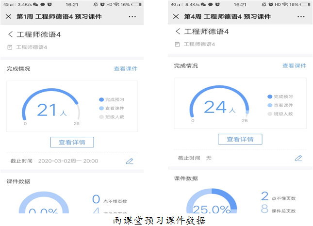 (1)在线教学须突出学习过程考核。该课程的过程考核的要点包括:雨课堂的预习课件的完成度、到课率、连麦回答情况、作业提交和完成情况、钉钉分享区的发言等。