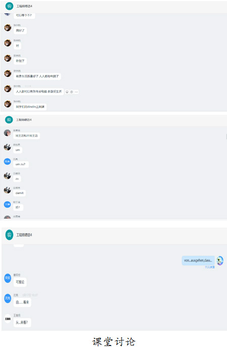 课中活动主要包括听、说、读、写的德语综合训练。受新冠疫情影响,学生本学期面临德福考试不确定性等问题,因此要求学生全面主动配合,保证课堂的学习效率。