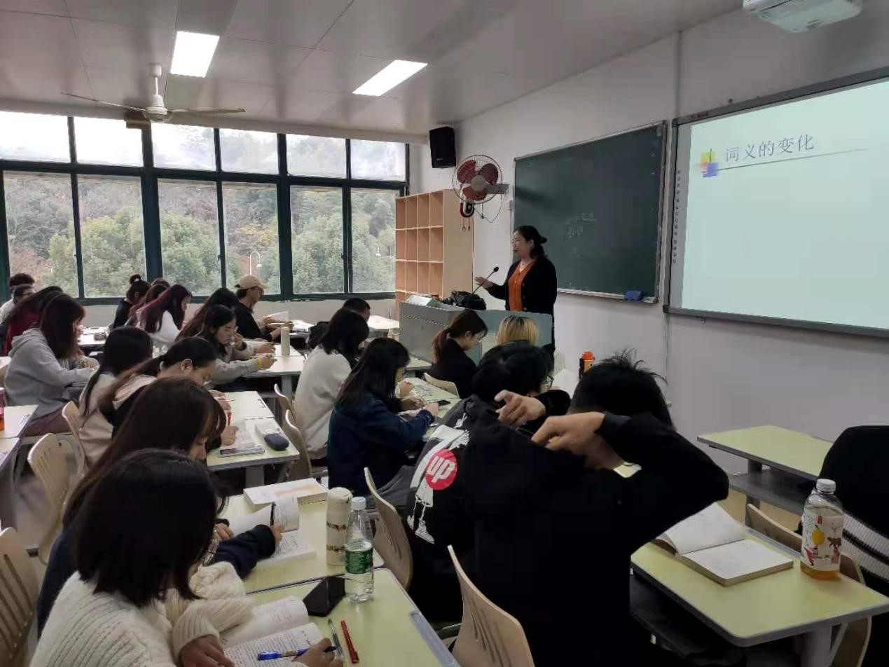 为严格把关精品在线开放课程建设项目验收,同时进一步提升课堂教学质量,积极倡导创新型教学,充分发挥优秀教师在教学中的引领示范作用,近日芒果视频 组织院教学督导组通过督导听课、材料审核等方式对方小卿、黄晶晶、黄扬三位老师主持的精品在线开放课程建设项目进行了结题验收。同时,为广大教师提供一个互相学习、共同提高的平台,组织面向全院的课堂教学观摩活动。全体外语教师观摩了分别于11月19日和11月20日由黄晶晶老师主讲的《国际交流英语》和黄扬老师主讲的《德语语言学导论》示范课。本次观摩活动由教学副院长王旭莲主持。