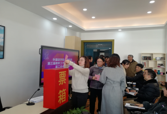 会议的最后议程是外国语学院/芒果视频 第三届分工会委员会选举投票。投票过程严谨公正,监、计票人认真履责,切实保障了投票结果真实有效。最后由院党委书记汤力峰宣布投票结果: 7位候选人得票数超过应到会人数的二分之一以上,选举有效,顺利当选为第三届分工会委员。
