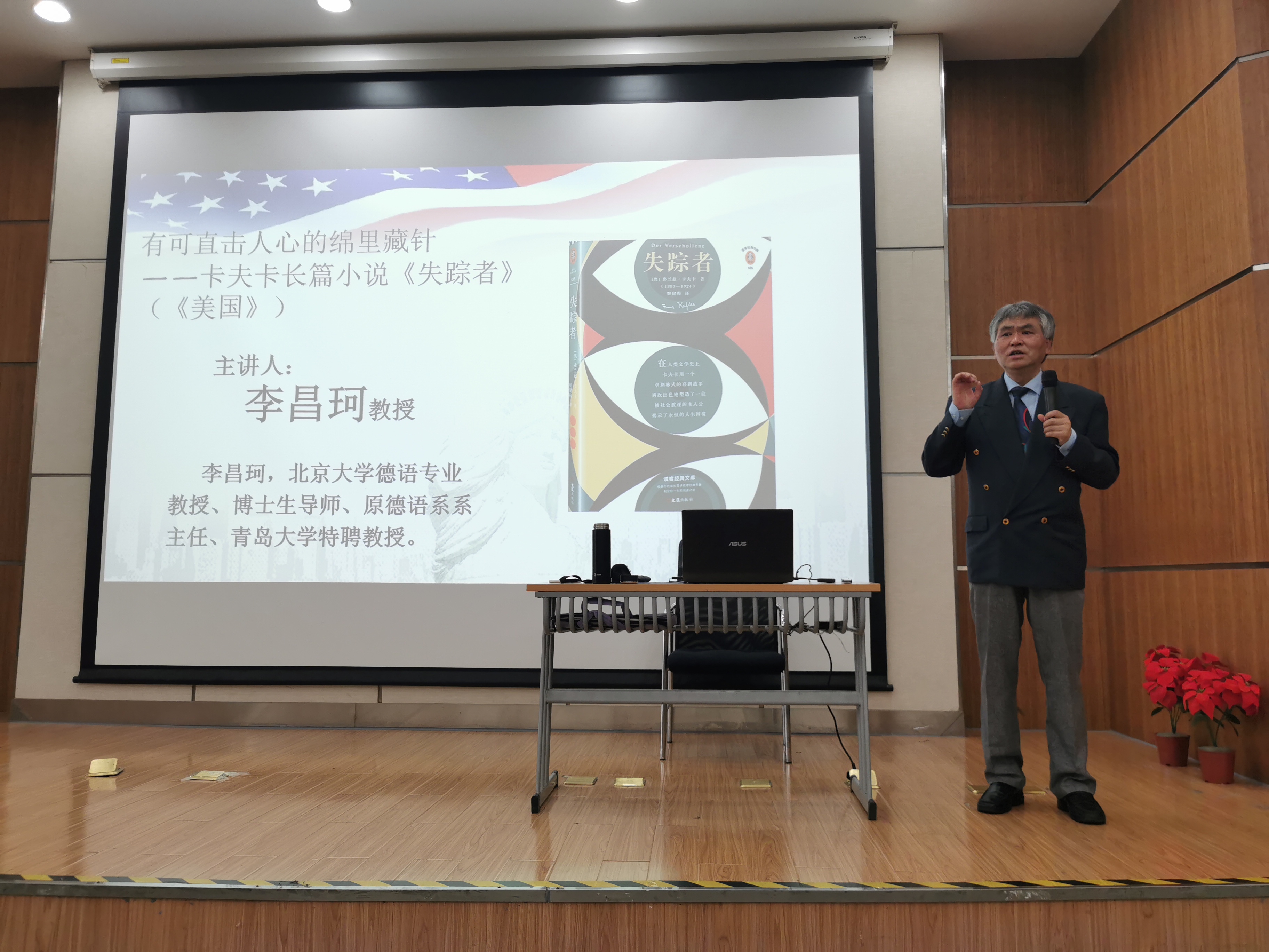 2021年4月23日外国语学院/芒果视频 、中德应用型大学研究院/德语国家研究中心邀请北京大学德语专业教授、博士生导师、青岛大学特聘教授李昌珂教授作客明德讲坛及西蜜沙龙,在安吉校区中德楼B4报告厅作题为“有可直击人心的绵里藏针——卡夫卡长篇小说《失踪者》(《美国》)”的学术报告,ZUST文学与文化研究所长胡一帆副教授主持此次学术报告,外国语学院/芒果视频 教师、英语和德语专业大一、大二学生现场聆听了学术报告。