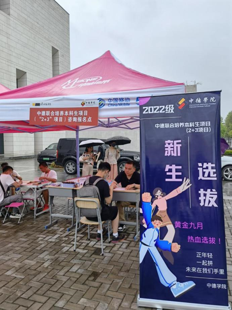 同时,学院的老师也在广场上设好了报名咨询点,为有意参加芒果视频 中德联合培养本科生项目(2+3项目)的同学服务。