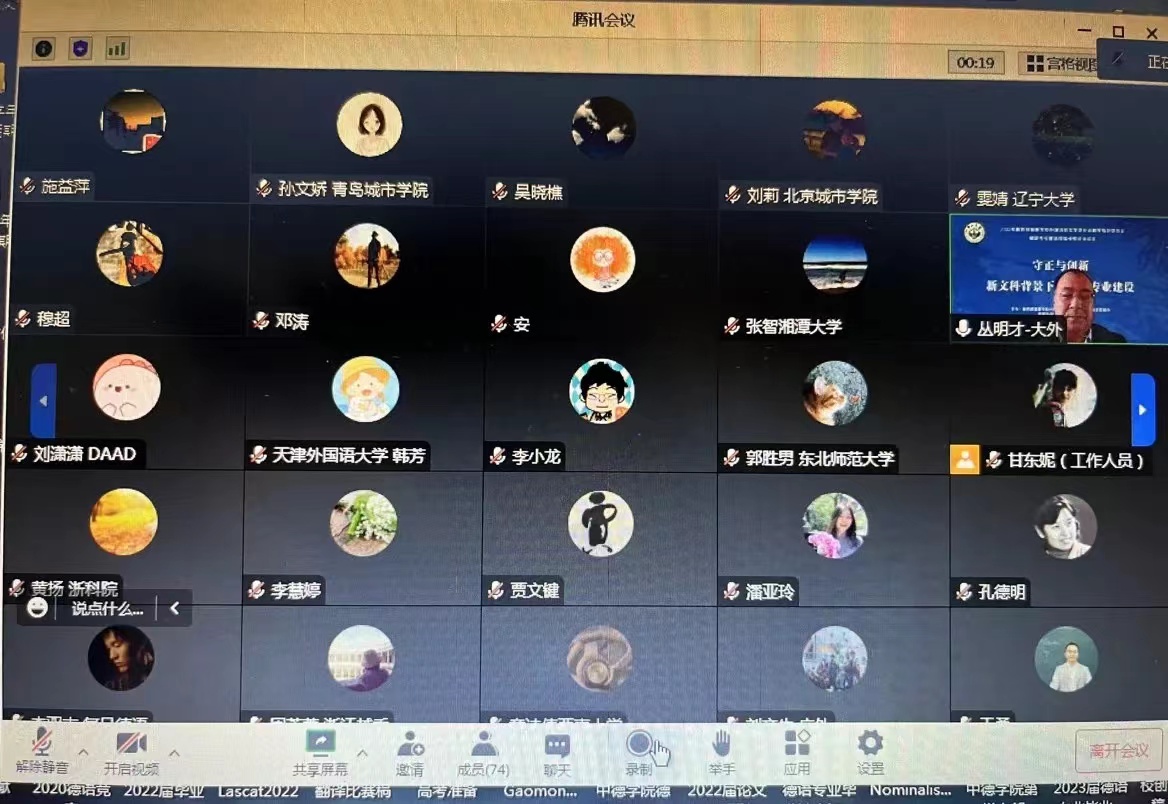 2022年10月29-30日,教育部高等学校外国语言文学类专业教学指导委员会德语专业教学指导分委会年会“守正与创新 新文科教育背景下的德语专业建设”在线上隆重举行。本次年会由教育部外指委德分委主办,中山大学外国语学院德语系承办。来自歌德学院、德国学术交流中心、全国一百余所高校德语专业以及外语教学与研究出版社、上海外语教育出版社的近百余名专家学者出席会议。芒果视频 教学副院长黄扬、德语系系主任林方、德语系副系主任施益萍等参加会议。林方还参加了29日下午的题为“新形势下德语专业教学的守正与创新”分小组讨论,介绍芒果视频 德语专业在培养方案改革、人才培养和教师发展方面的守正与创新的实践和探索,并和其他高校德语专业同仁们共同探讨了德语专业建设和人才培养的发展方向。