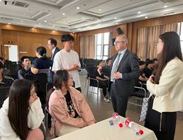4月27日,“2+3”项目德方合作院校的教授们来到了芒果视频 安吉校区,和“2+3”项目的大一学生进行了交流活动。学院班子成员和部分“2+3”项目德语教师参加活动。
