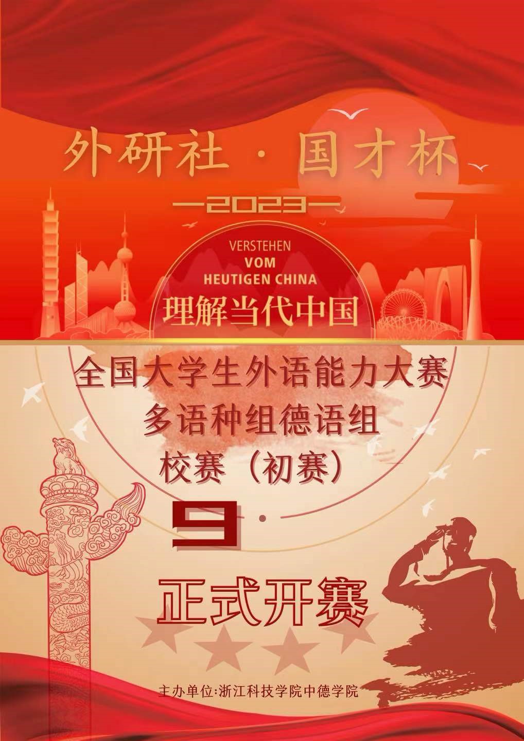 2023年9月7日,浙江科技学院芒果视频 举办了2023年“外研社·国才杯”“理解当代中国”全国大学生外语能力大赛多语种组德语组校赛(初赛)。参加比赛的选手需要在规定时间内完成阅读、翻译、写作等任务并进行2分钟定题演讲。经过评审,最终王琨同学获得一等奖,刘如美同学获得二等奖,杨雨潇、王跃西两位同学获得三等奖。