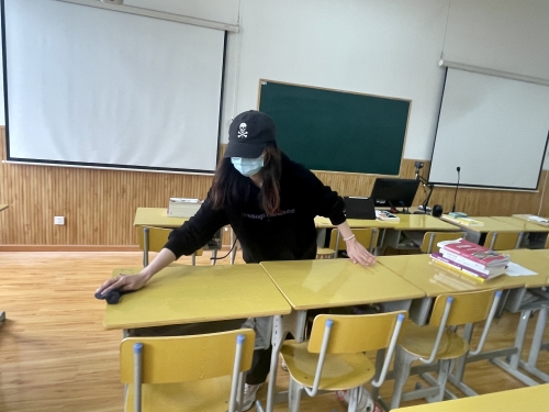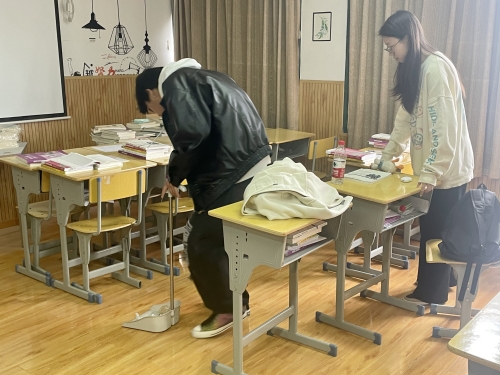 活动围绕教室环境卫生整治、清除卫生死角、消除病媒生物孳生和栖息环境来开展,党员同学们认真整理教室设备及用品,手拿扫帚、簸箕、抹布等工具,对黑板、桌椅、地面等进行清扫和擦拭。大家以身作则、亲密协作、效果明显,各项设施用具摆放井然有序,教室卫生面貌焕然一新。