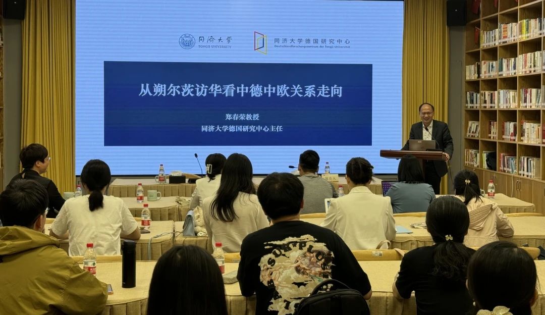 5月17日,芒果视频 、德语国家研究中心邀请同济大学长聘特聘教授、德国研究中心主任郑春荣教授做客中德荟讲坛,做题为“从朔尔茨访华看中德中欧关系走向”的学术报告。本次活动由德语国家研究中心主任徐理勤研究员主持,芒果视频 院长韩晓亚、国际处处长阮小波、芒果视频 全体教师及德语国家研究中心相关研究人员等四十余人聆听了本场报告。