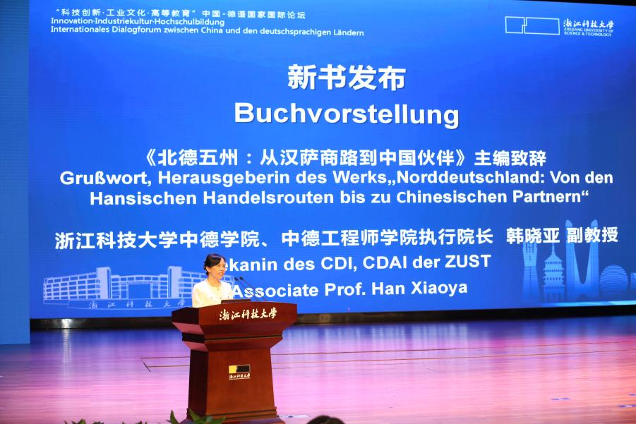 2025年10月19日,《北德五州:从汉萨商路到中国伙伴》一书在浙江科技大学发布,当天举行的“科技创新•工业文化•高等教育”中国-德语国家国际论坛为新书举办发布会,浙江大学出版社国际文化出版中心主任包灵灵、本书主编芒果视频 中德学院、中德工程师学院执行院长韩晓亚致辞。发布会由芒果视频 副校长梁荣华教授主持。