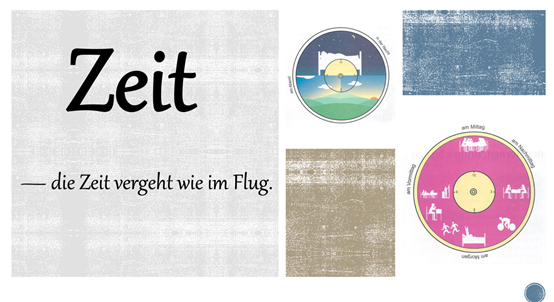 3. 结合图文,提出问题:Wie verstehen Sie mit „Zeit“? 通过学生讨论以及回答书本上的问题,引出思政内容——习近平在2020年新春团拜会上指出:时间不等人!历史不等人!时间属于奋进者!历史属于奋进者!大学生活是我们一生中最应该珍惜的,大学教育将为未来的事业和职业奠定基础。我们应该学会管理时间,明确学习目标,树立正确的学习观。让我们的“青春在为祖国、为民族、为人民、为人类的不懈奋斗中绽放绚丽之花。”