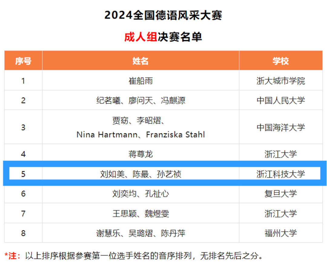 近日,由浙江大学德国文化研究所、北京德国文化中心·歌德学院(中国)、杭州西诺教育咨询有限公司主办,浙江大学学生国际化能力培养基地、浙江省绿色科技文化促进会、杭州英特外国语学校协办的《向“新”而行,拥抱未来》——2024第八届可持续发展全国青年德语风采大赛,历经一个多月的海选赛完美收官。